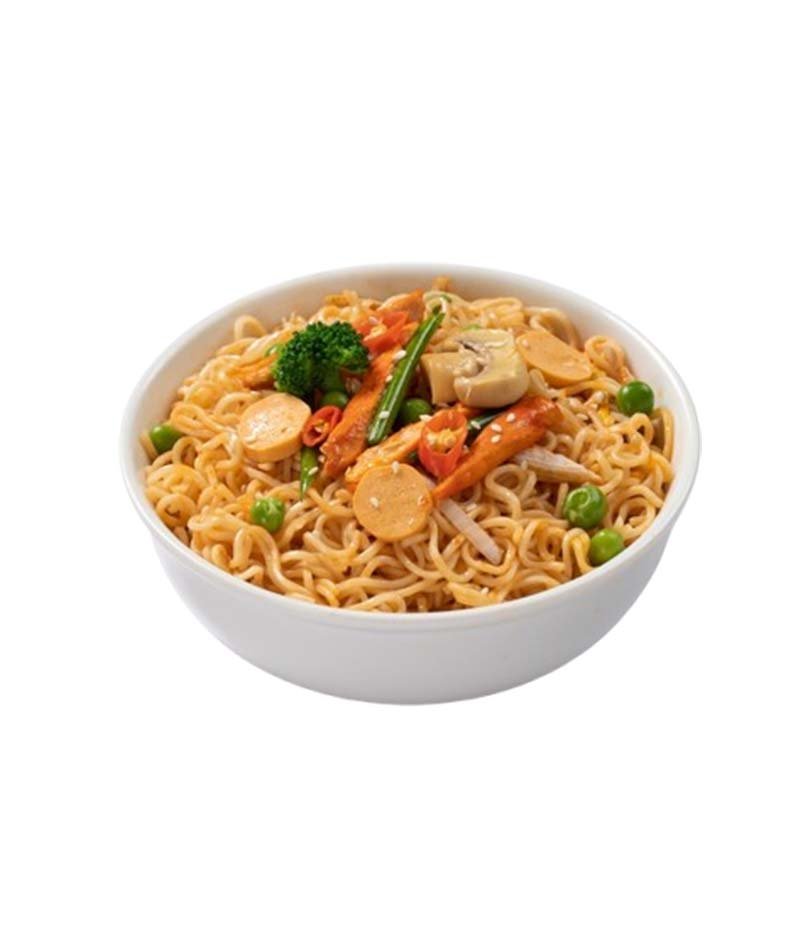 Cook noodles in boiling water for 5–6 minutes. Drain and rinse with cold water. Sauté